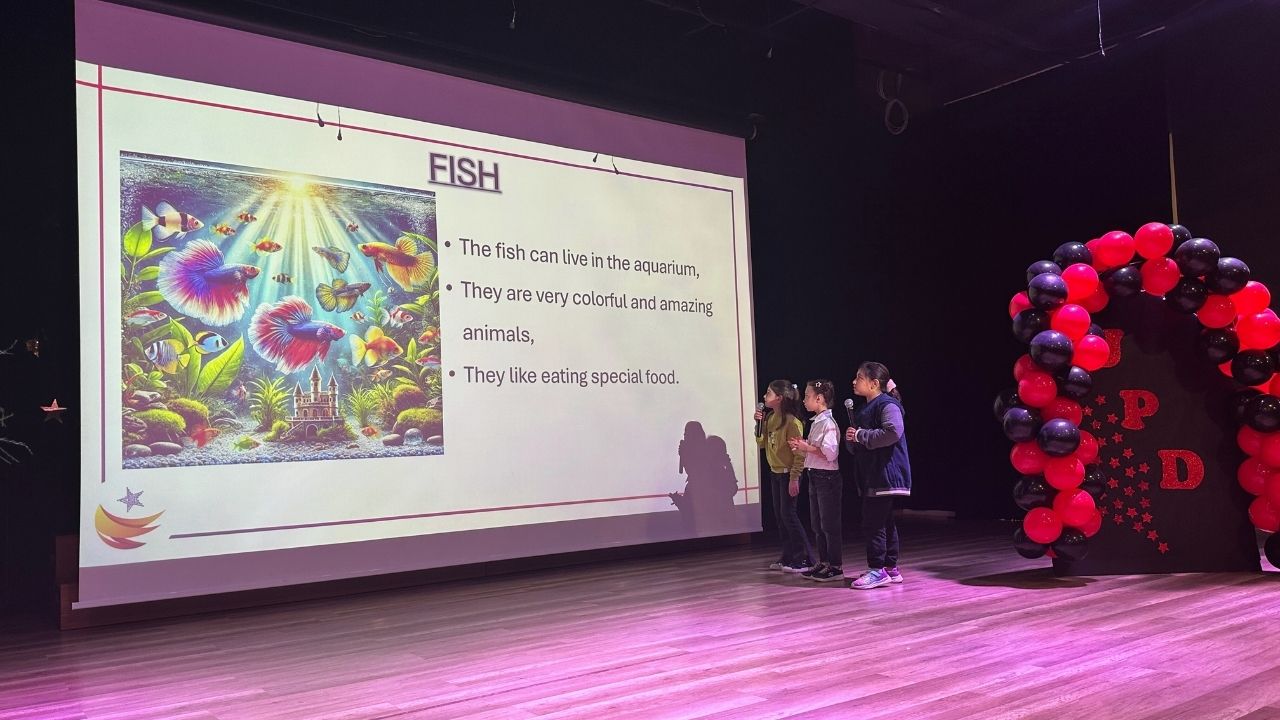 Konferans salonlarımızda gerçekleşen bu etkinlik sayesinde öğrencilerimiz hem İngilizce konuşma becerilerini hem de sunum yapma yeteneklerini geliştirme fırsatı buldular. Sahnede yer alarak benzersiz bir deneyim yaşayan öğrencilerimiz, özgüvenlerini artırarak harika bir performans sergilediler.